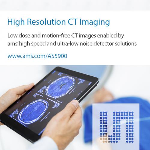 艾邁斯半導體產品市場經理Josef Pertl表示:“AS5900的超低噪聲和高分辨率將使CT掃描儀OEM廠商在更高的滿量程范圍內實現更好的成像效果,并且靈活調控像素大小。基于這款新的、高性能電流-數字轉換器,醫護人員將能夠在下一代CT掃描儀的圖像質量和清晰度方面看到顯著差異。該器件在高速和低功耗運行中的低噪聲特點將呈現無運動偽影的CT圖像,即便是在較低輻射量且最高轉速情況下”。
