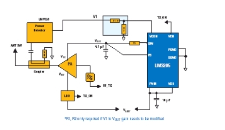 使用DC-DC轉換器(功率放大器電源穩壓器)的主要目的是減少分母中的Pdc因子。當功率放大器與電池直接相連時,Pdc=Vbatt*Ibatt,而當它使用功率放大器電源穩壓器供電時,Pdc=V o*I o。現在我們能夠看出,為了增加PAE,V o和Io 必須低于Vbatt和Ibatt。這可以通過降低發射的射頻功率電平,降低功率放大器電源穩壓器的輸出電壓來實現。這樣也降低了Io (功率放大器的吸收電流),并且由于DC-DC轉換器的高效性,電池的輸出電流也會降低。