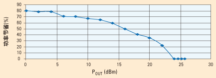 圖4:當功率放大器由電源穩壓器供電時,功率節省的百分比 |