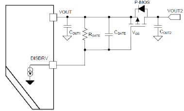從上圖我們可以看到,所需要的外部器件很少。該芯片還提供一個單獨的 pin 腳 DIS來驅動負載輸出端的外部 FET(P-FET),在設備關斷或者輸出短路時它能完全斷開輸入與輸出的連接。啟動時,通過內部電流源來控制外部 P-FET 開關。在關斷或者輸出短路時,將輸出與輸入側隔離,如下圖: