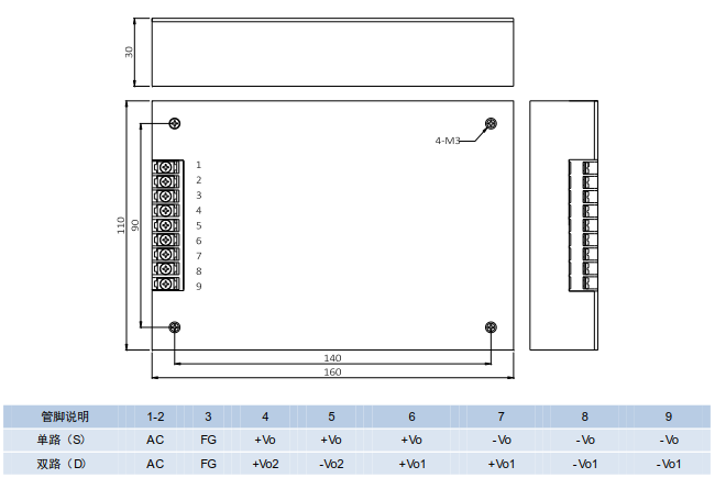 電源尺寸:160mmX110mmX30mm
